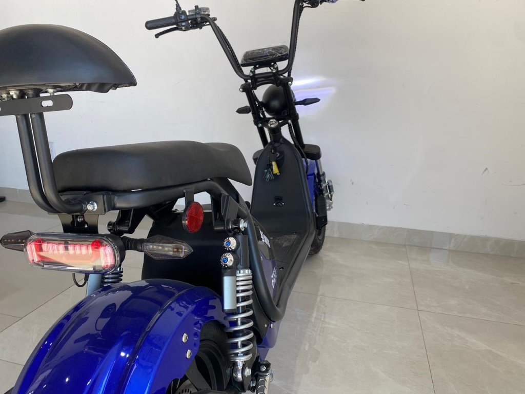 Alarme com bloqueio e travapainel digitalacionamento por NFCcompartimento de bateria extracarrega até 180kgencosto do passageiroFreio a discoamortecedor a gáscarregador bivolt e Farol em led 3 níveisresistente a água índice de proteção IP65 3000w.